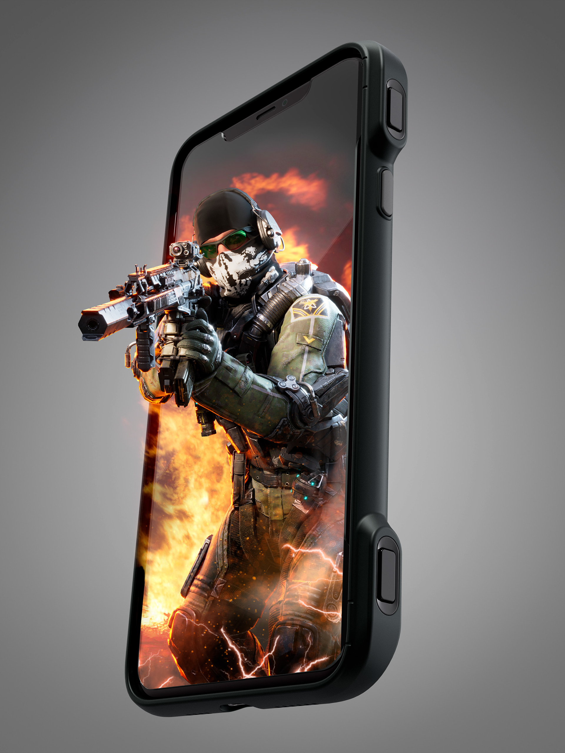 3D rendering of phone and mobile gaming products by Mobile Gaming Corp used in online marketing and product packaging.